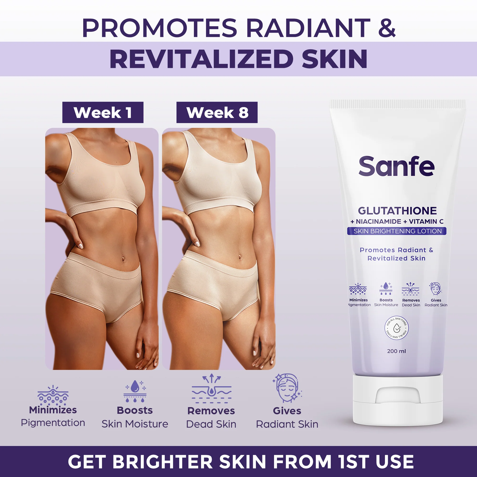 Sanfe Glutathione + Niacinamide + Vitamin C Skin Brightening Lotion - 200ml