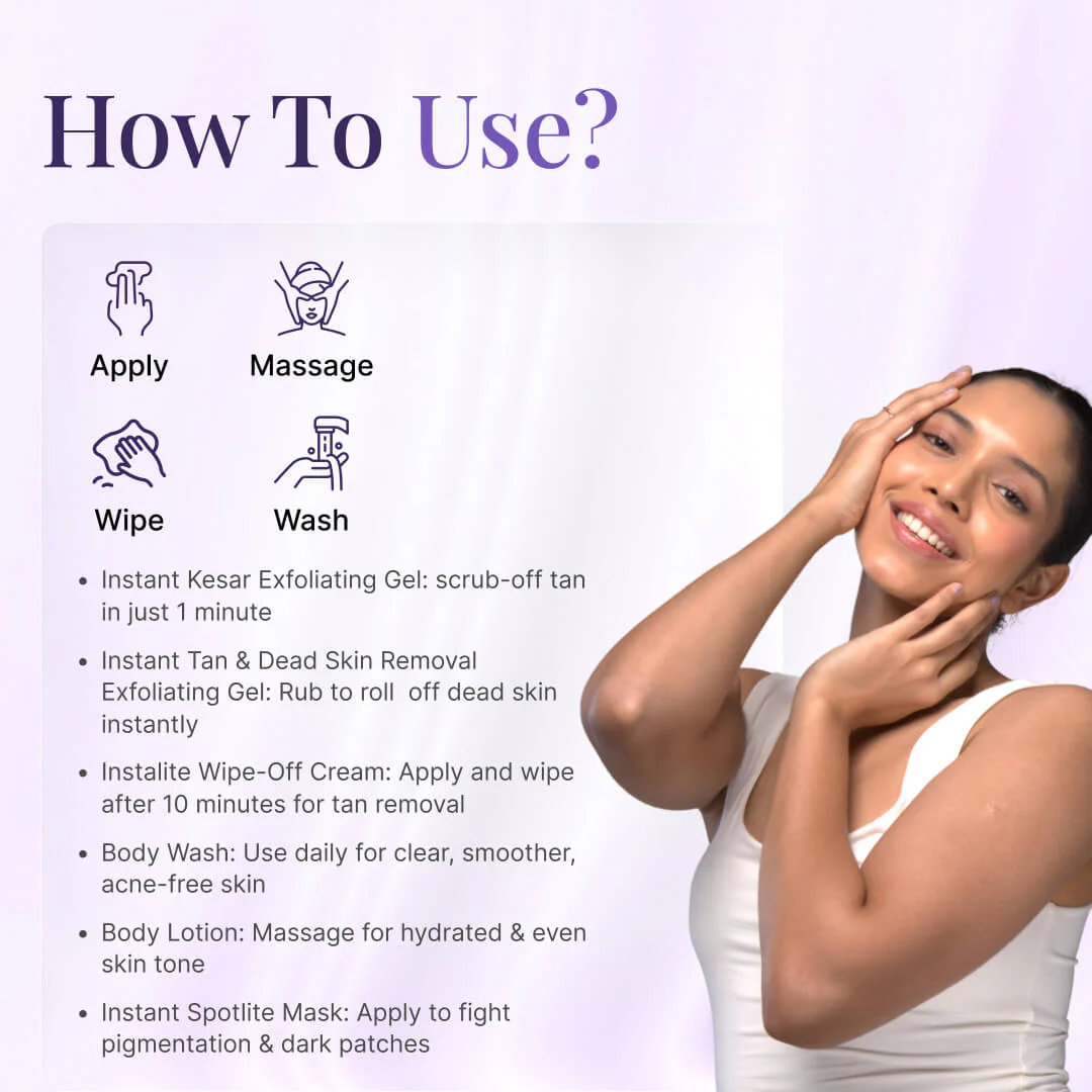 Itās a complete, no-fuss system that delivers visible improvement in tan, dullness, and dark areas, ensuring confidence and radiance through the wedding celebrations.